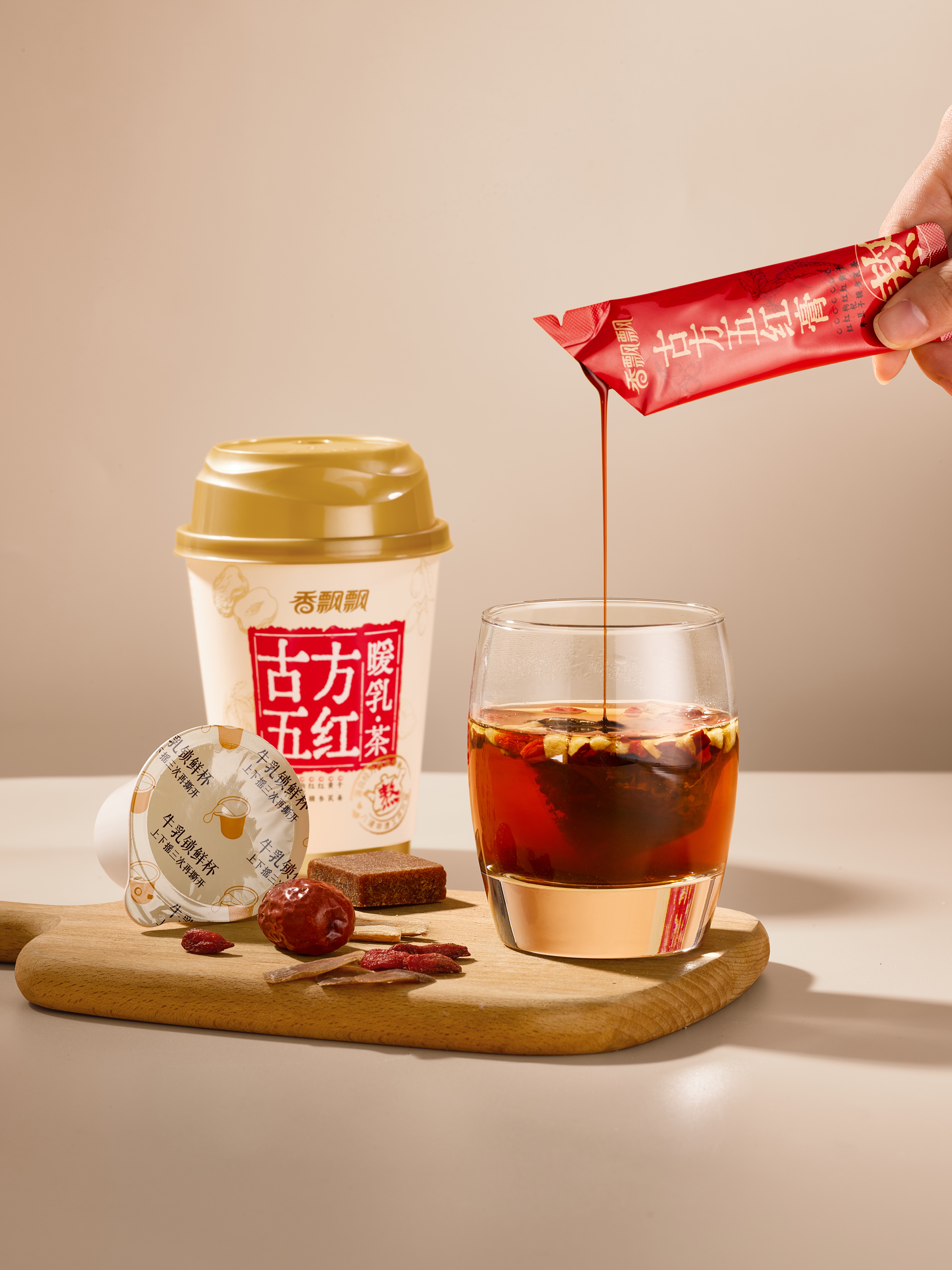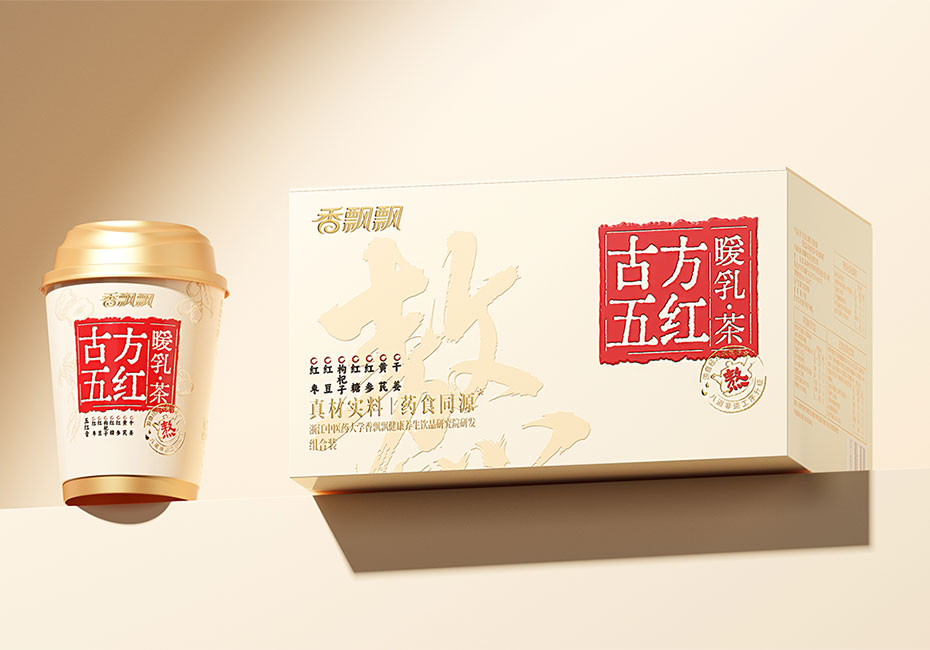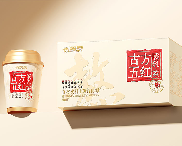 隨著健康飲食日益受到重視,藥食同源產品受到了越來越多消費者的青睞。香飄飄全新推出的「古方五紅暖乳·茶」,以暖心更暖身的產品定位,切入現代年輕人的輕養(yǎng)生場景。香飄飄聯(lián)合柏星龍,以“中式養(yǎng)身智慧”:為內核,依托「以食養(yǎng)身」的產品優(yōu)勢,包裝設計從視覺到體驗實現系統(tǒng)化升級-不僅延續(xù)東方美學的視覺語言,更打造出沉浸式的藥食同源消費體驗。